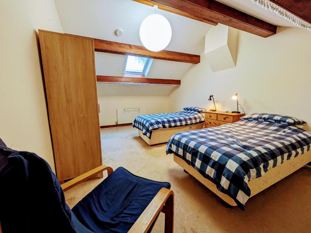 On the other side of the small landing is the exceptionally spacious, yet cosy, twin room. There is space for children and adults to unwind, read or play with the games and small collection of toys whilst still providing plenty of storage for clothes and bags.